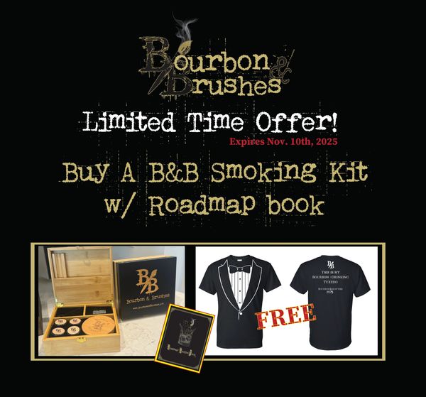 Buy the NEW Custom Bourbon & Brushes Smoking Kit and receive the Roadmap Recipe Book and "This is Bourbon Drinking Tux" for FREE!!